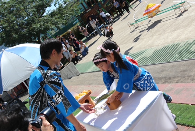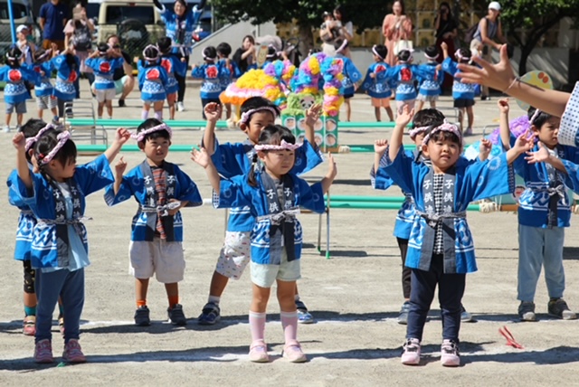 秋らしい澄み切った青空のもと、そろいの法被の子ども達と「収穫祭」を行いました。