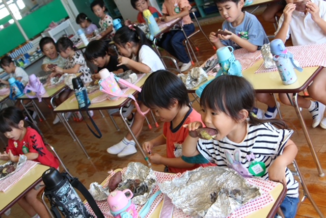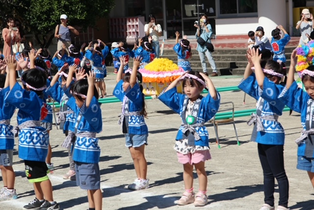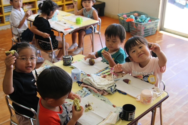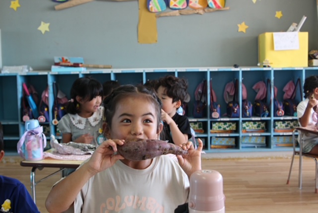 順番に園庭を練り歩いてた後は、みんなで元気よく「ソーレソレソレ」を踊って、おいしい焼きいもをお腹いっぱい食べました。