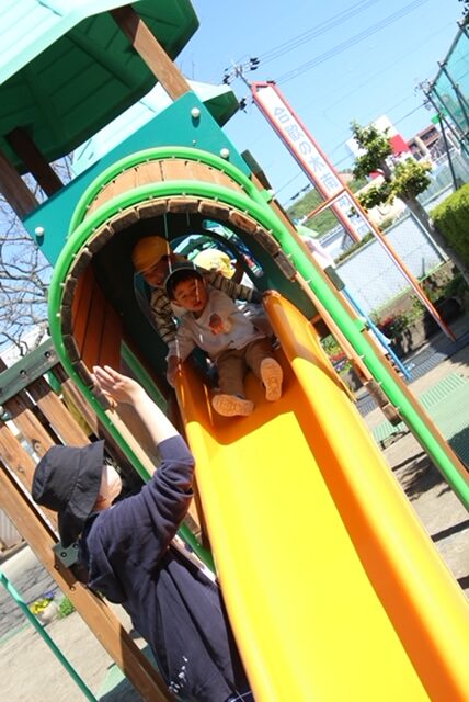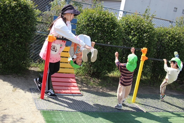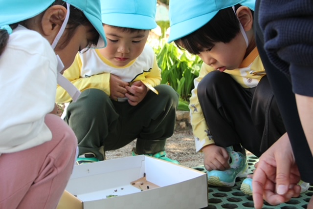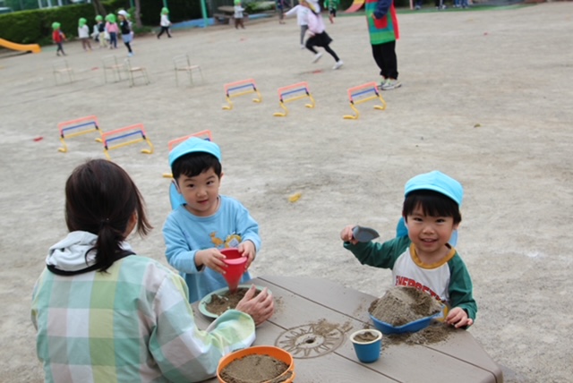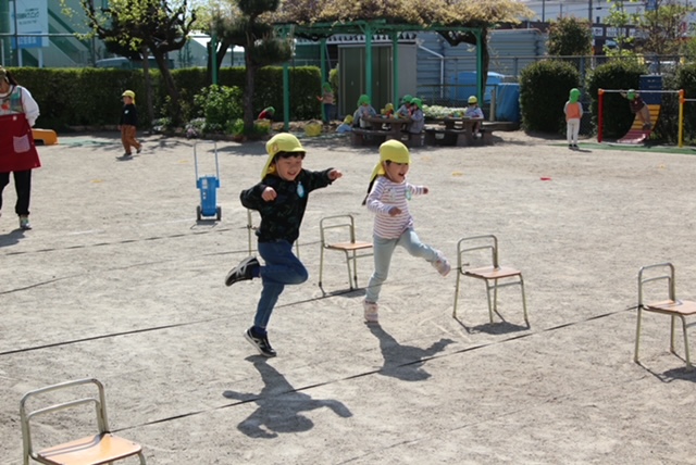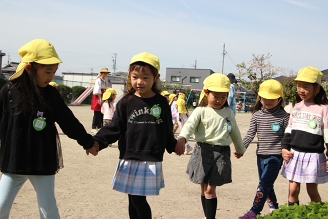 と新しい友だちと手をつないでかけだしていったり、クラスの友だちや先生と汗びっしょりになりながら、かけっこに夢中になったり、園庭に咲くきれいな花や虫をながめたりと、思い思いの遊びを見つけ楽しんでいます。